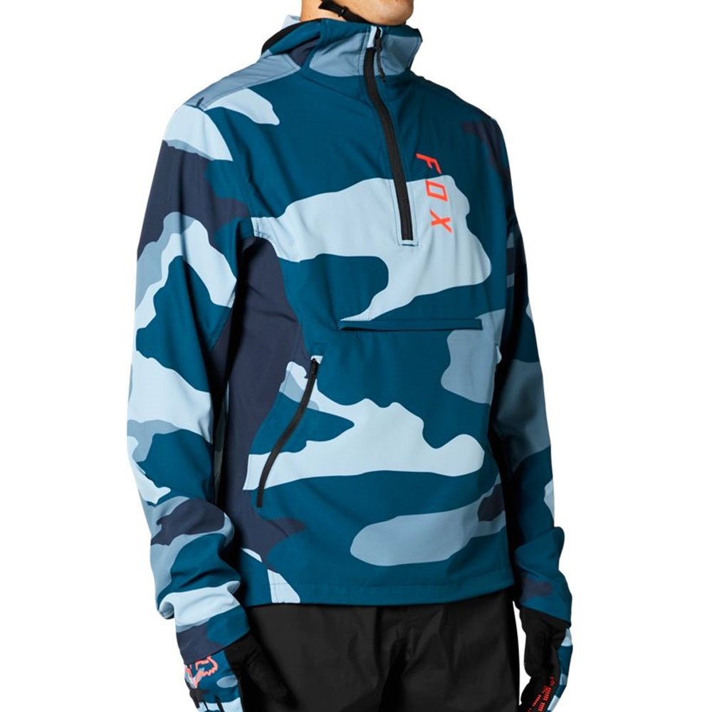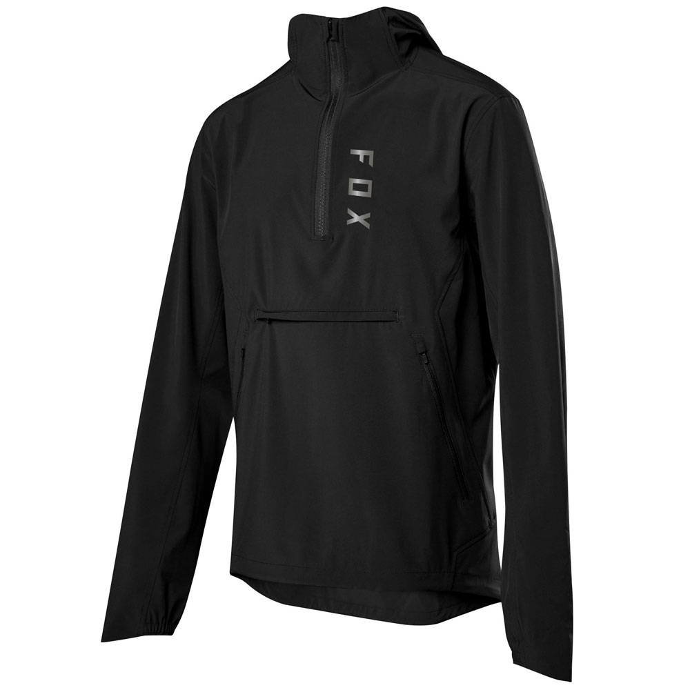 Fox Racing Ranger Wind Pullover: Designed to perform both on and off the bike, the Ranger Wind Pullover is a the best kind of gearit packs neatly into itself when you dont need it, and quickly whips out to protect you when you do. This lightweight, anorak-style jacket is constructed with comfortable, four-way stretch fabric, has a DWR finish to shed water, dirt, and debris, and features a casual-sized hood which can fit over your bike helmet, if needed.