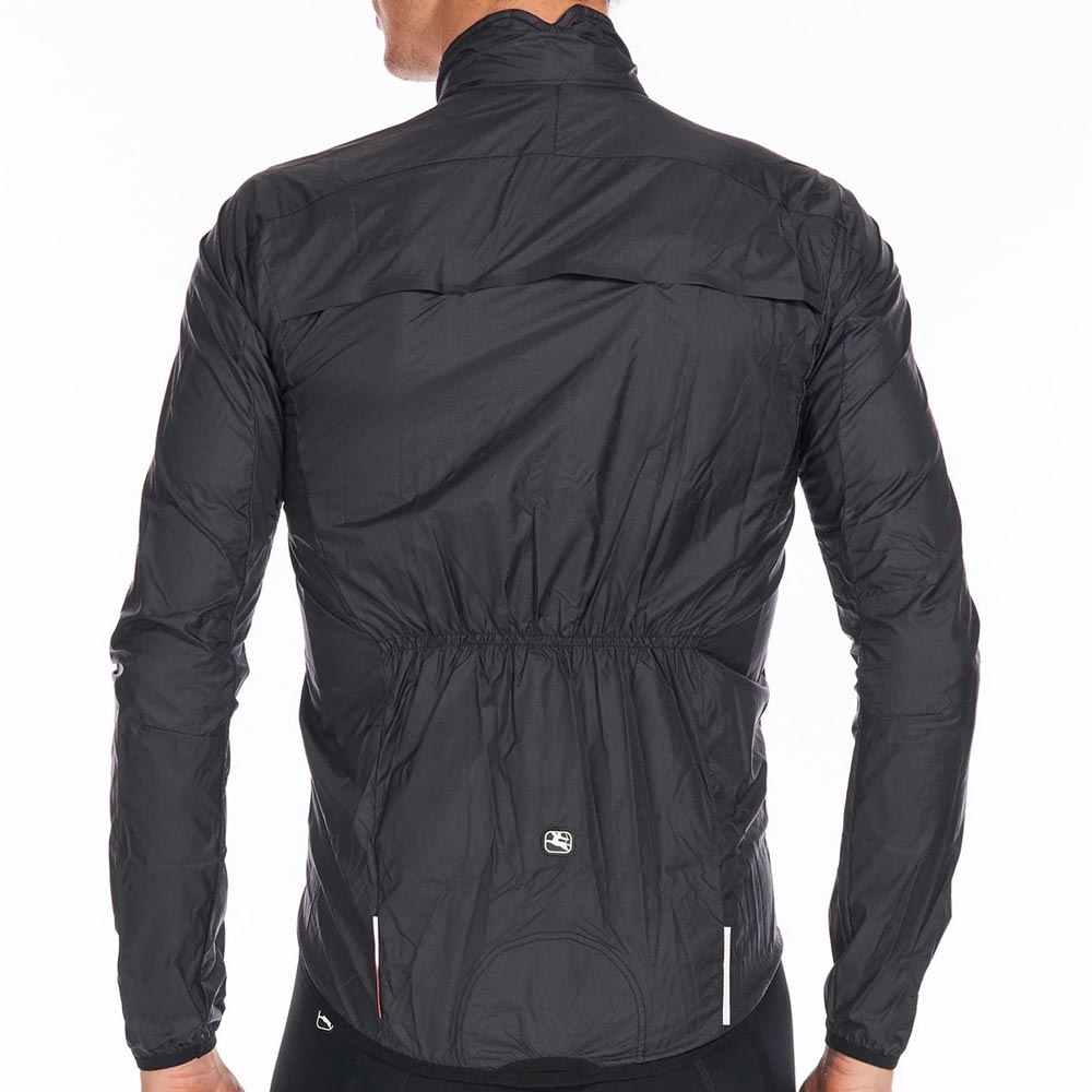 Giordana Zephyr Jacket: The Zephyr Jacket is a semi-opaque lightweight piece that defends against wind and moisture extremely well. While this isnt a waterproof piece, due to the lack of taped seams, it is extremely water-resistant. The additional piece of fabric on the back covering the shoulders also helps keep rain away on fast descents. Reflective accents on the back aid in visibility.