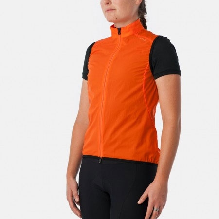 Giro Chrono Wind Vest Women’s: The Womens Chrono Wind Vest will quickly become a staple in your cycling wardrobe to the point that youll be packing it for every ride. Featuring stretch nylon, this vest is feather light, extremely packable, and moves with you. It has an athletic fit, allowing room for cargo in your jersey pockets. We also integrate mesh ventilation, so it protects while still breathing and ensuring your heat can escape. All of these features and the Chrono Wind Vest still packs down to the size of a clementine, so why not pack it one every ride.
