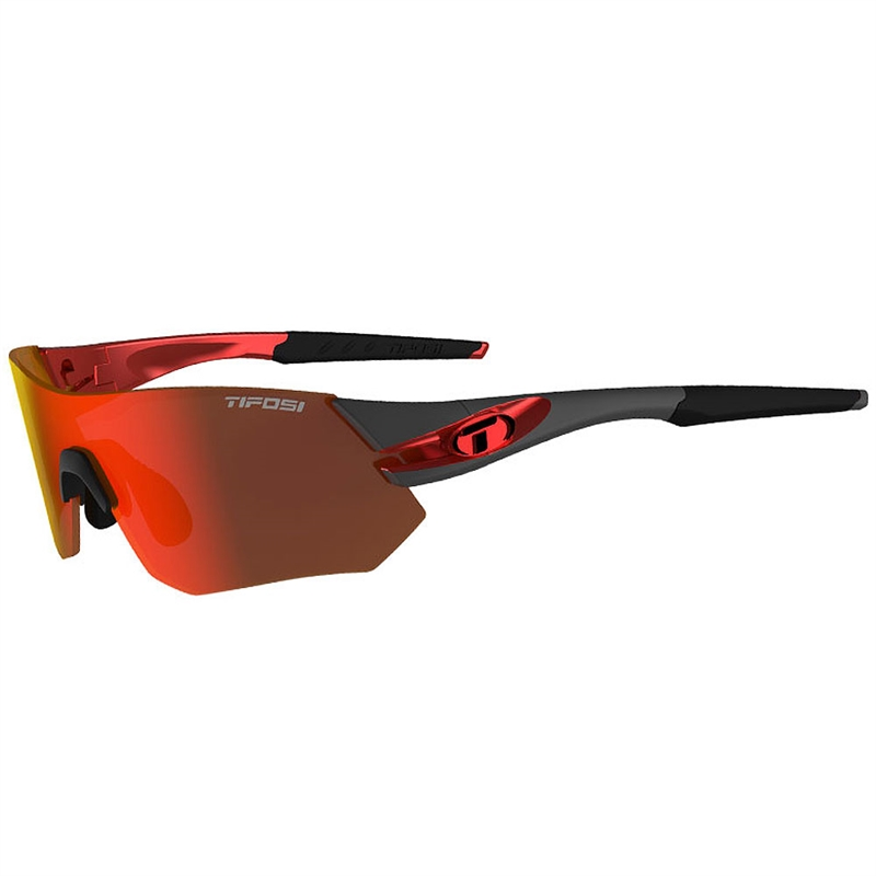 TIFOSI Tsali Gunmetal/Red Clarion Red Lens: Tsali equips you with the protection you need. They are extremely light weight with nose and earpieces that are adjustable for a custom fit. Tsali is designed to stay in place at your most energetic with the use of hydrophilic rubber, a material that increases grip as you sweat.