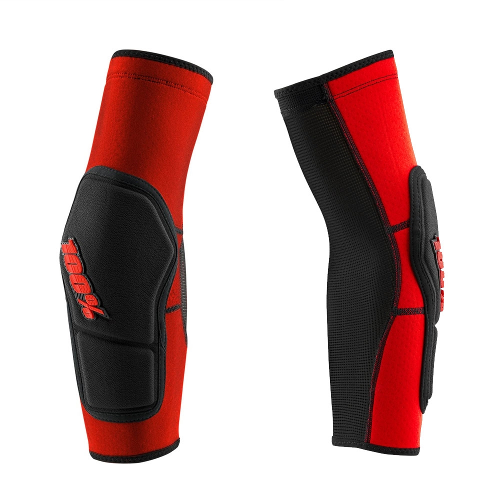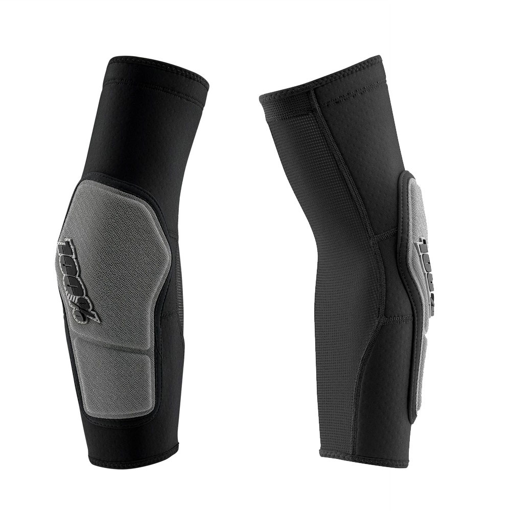 100% Ridecamp Elbow Guards: Lightweight slip-on sleeves pre-curved chassis for attack position Lightly padded nylon anti-abrasion outer skin Fully perforated neoprene chassis for breathability Tacky silicone elastic webbing to prevent slippage Fully ventilated rear mesh for maximum cooling