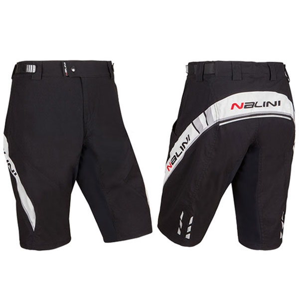 Nalini Miles MTB Shorts: MTB short with mesh short inside and removable pad. Stretchable insert in the central crotch. Adjustable waist with stretchable loops. 2 side pockets.