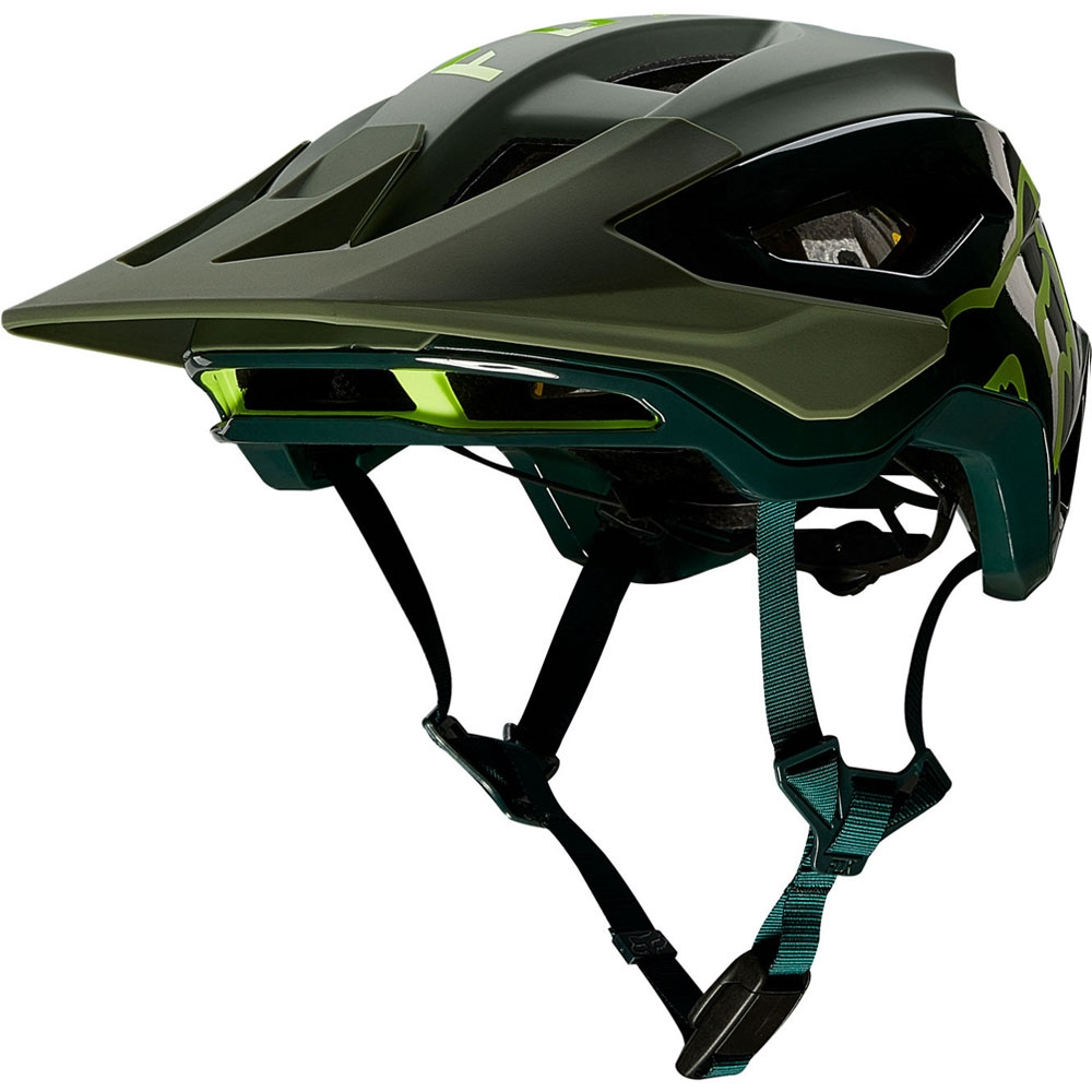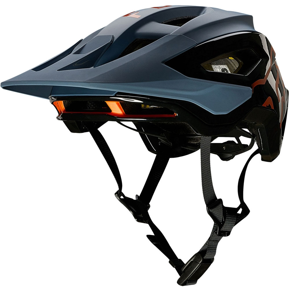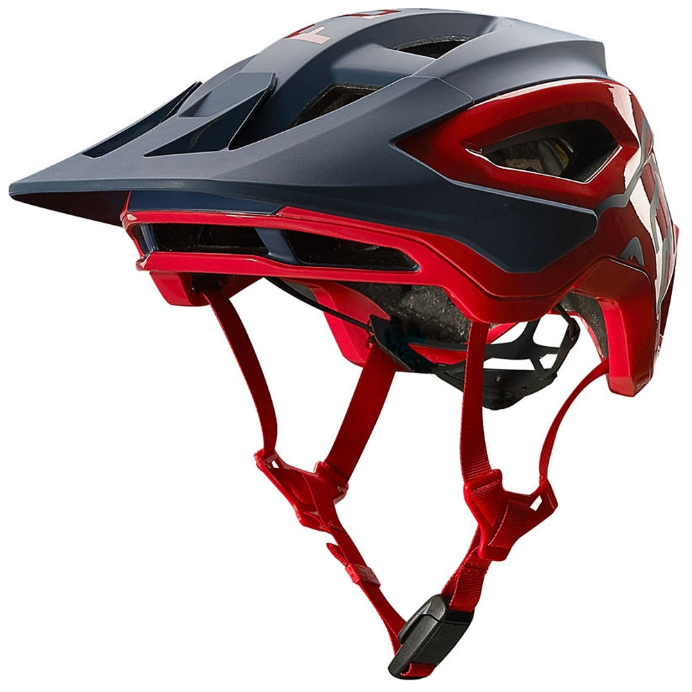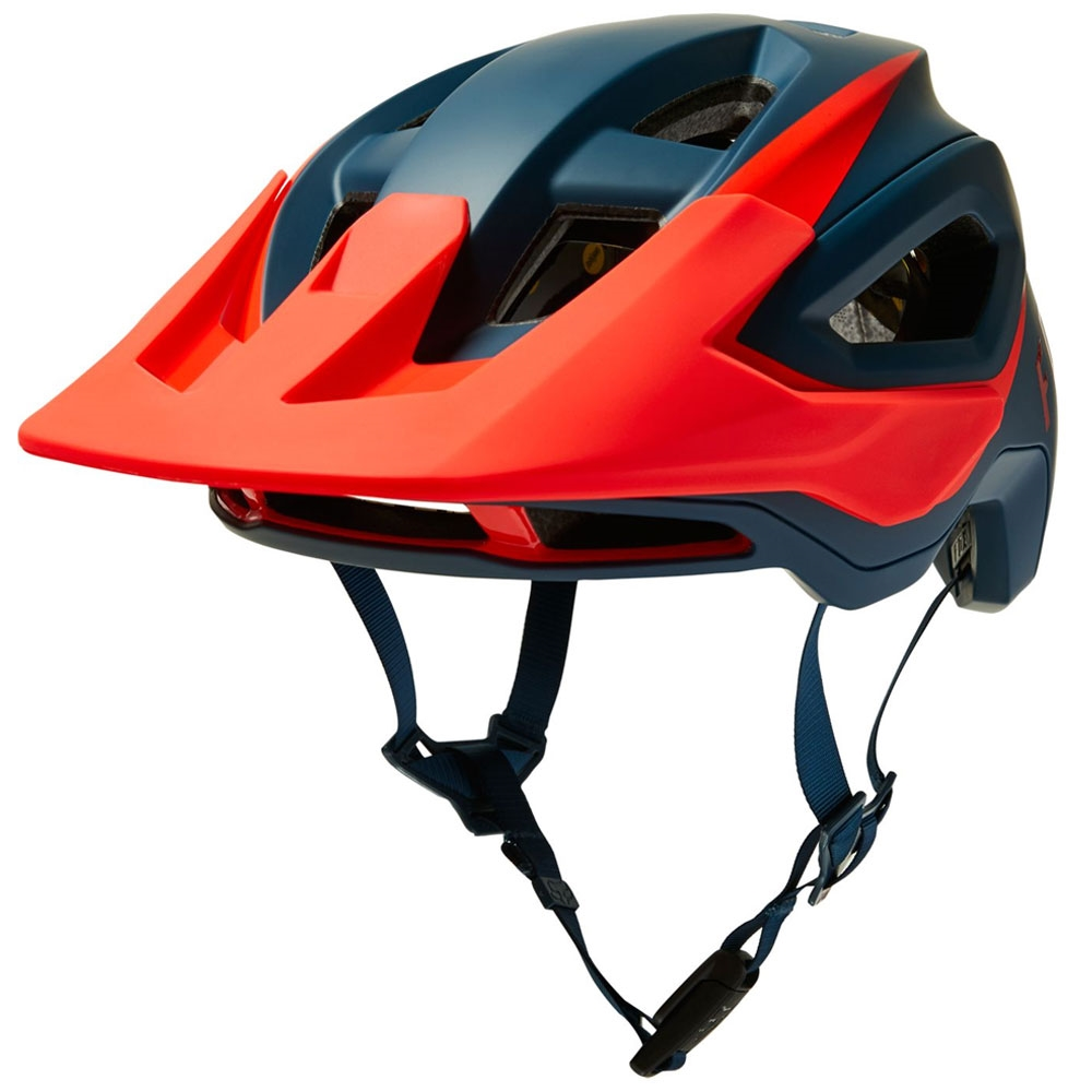 Fox Racing Speedframe Pro Helmet: The Speedframe Pro Helmet can go anywhere fast! Designed with input from our pro mountain bike athletes, this top-tier open-face trail helmet offers a market-leading feature set including MIPS, an easily adjustable multi-position visor, and a 360-degree fit system. The pro version is equipped with a Varizorb dual-density EPS liner, Fidlock® SNAP helmet buckle, and an XT2® antimicrobial comfort liner.