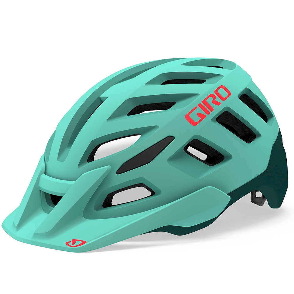 Giro Radix MIPS Women’s Helmet: The highly adjustable Roc Loc 5.5 MIPS system allows you to customize fit and feel for enhanced stability and long-range comfort while providing an added measure of protection from rotational forces in the event of an angled impact. The P.O.V. visor offers 15 degrees of adjustment, and the tough polycarbonate outer shell is fused permanently to the EPS foam liner using our In-Mold construction process, to enhance durability and ventilation without excess bulk.