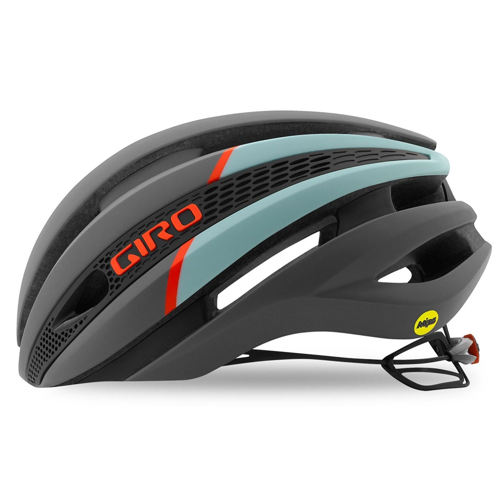 Giro Synthe MIPS Helmet: The Synthe MIPS is the pinnacle of road helmet design and now includes the Multi-DIrectional Impact Protection System, which can provide more protection in certain impacts. The compact form slips through the air with ease across multiple yaw and head angles, and offers greater cooling power than the Aeon. Other key features include the Roc Loc Air fit system with 2-way fit tuning and Aero Mesh Panels with a dedicated port for securely docking sunglasses as you ride.