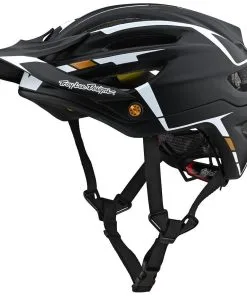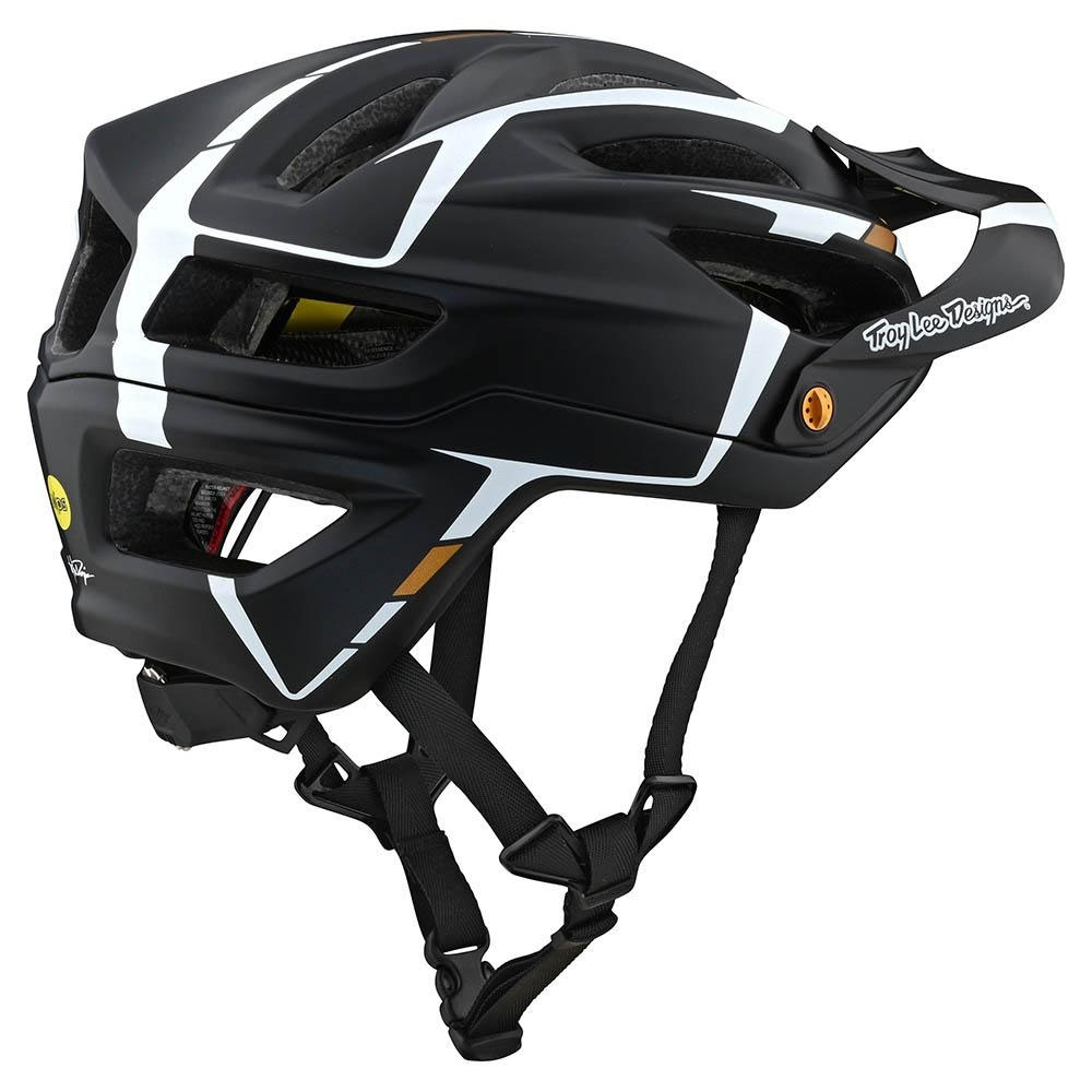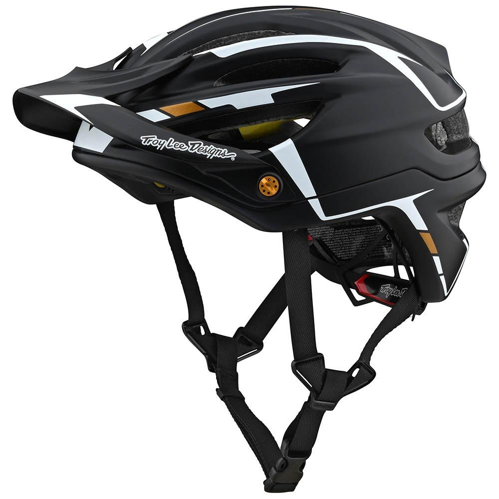 Troy Lee Designs A2 MIPS Helmet Sliver Black/White: The trailblazing A2 is Troy Lee Designs MTB trail helmet that checks all the boxes. Its stylish shell not only incorporates huge intake and exhaust ventilation ports, but it also comes with the very best in impact protection. From breakaway visor screws and the innovative MIPS system and an industry-first dual-density EPP + EPS liner that protects against both high and low-speed impacts; this is a helmet that doesnt take your safety lightly. Add in an adjustable strap and X-Static® Pure Silver comfort liner and the comfort is every bit on par with the protection.
