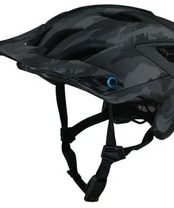 Troy Lee Designs A3 MIPS Helmet Brushed Camo Blue: The all new A3 MIPS open face helmet by Troy Lee Designs for all MTB/enduro trail riders who want a cool and fast helmet with deep coverage. The retention system is the TLD V3 with a micro adjustable ratchet system and a V2 Fidlock magnetic buckle. The internal padding is made out of sweat-absorbing anti-odor X-static liner. The visor is 3 position adjustable and has a magnetic system for secure goggle storage.