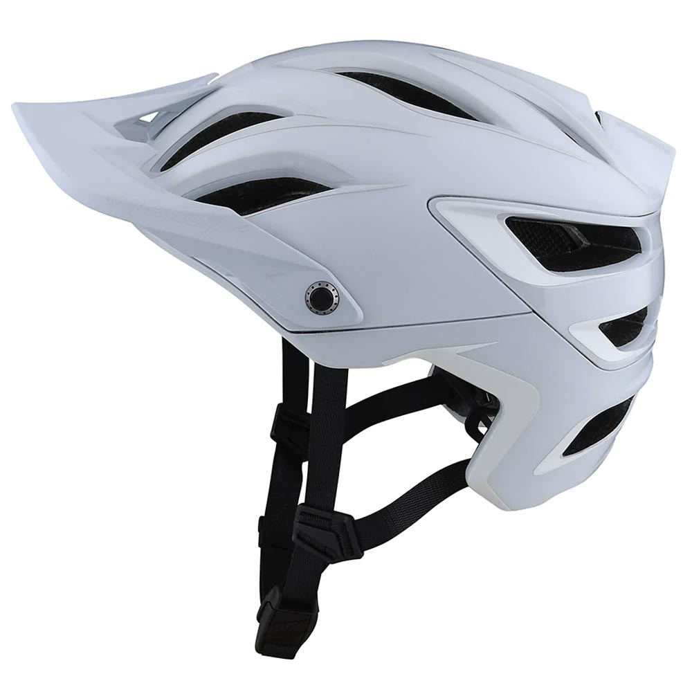 Troy Lee Designs A3 MIPS Helmet Uno White: The all new A3 MIPS open face helmet by Troy Lee Designs for all MTB/enduro trail riders who want a cool and fast helmet with deep coverage. The retention system is the TLD V3 with a micro adjustable ratchet system and a V2 Fidlock magnetic buckle. The internal padding is made out of sweat-absorbing anti-odor X-static liner. The visor is 3 position adjustable and has a magnetic system for secure goggle storage.