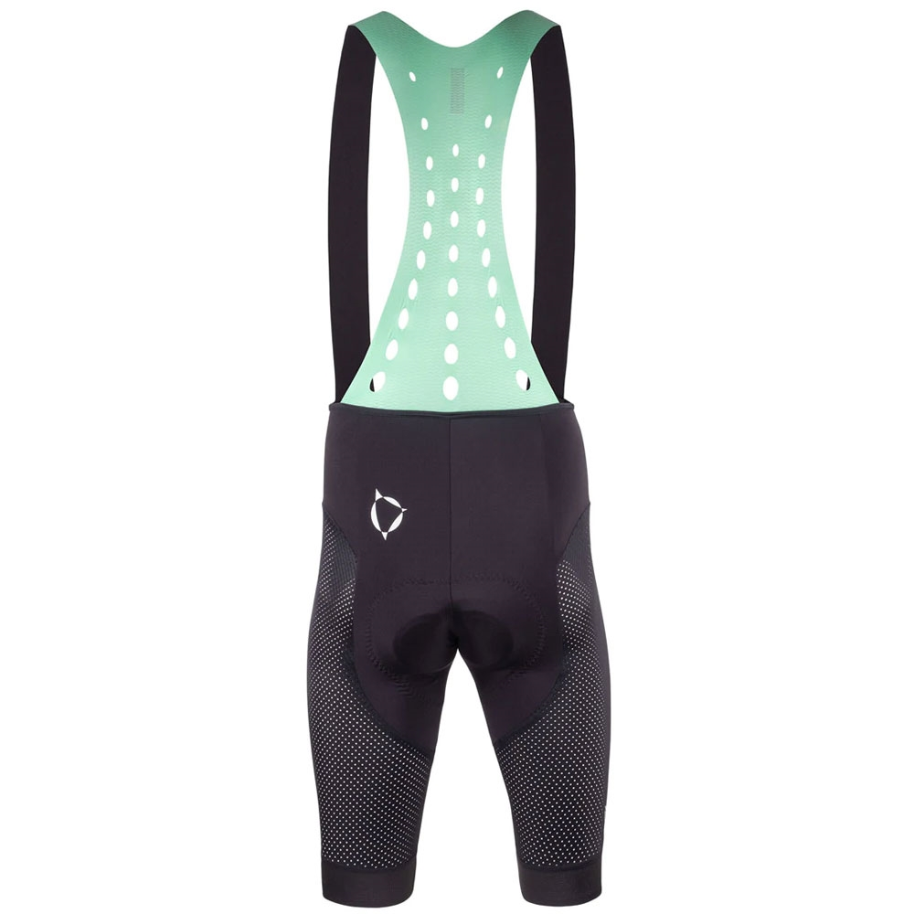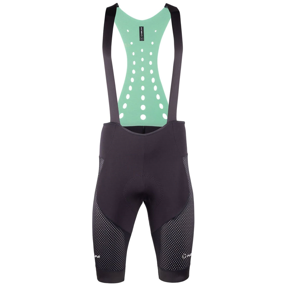 Nalini Ergo Summer Bib Shorts: Nalini ERGO SUMMER bib shorts are designed for hot summer days, intense rides or racing. The upper part features laser-cut openings in kinetech woven fabric to disperse heat and sweat to keep you cool while contouring your body to offer stability. The lightweight shorts fit closely to your body allowing the high-performance compression fabric to stimulate your leg muscles. Breathable materials and micro-perforations enhance ventilation and prevent you from overheating. Wide, paneled leg grippers.