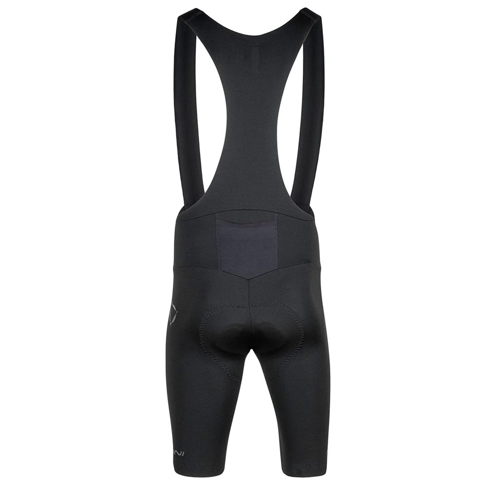 Nalini Laser Bib Shorts: Nalini LASER Bib Short is engineered from a single fabric, keeping the number of cuts and seams to a minimum, while preserving a high technical level of the garment. The fabric provides a compressive fit along with a very soft touch and keeps the body fresh and dry, and ensures superior breathability. The laser clean cut used all over with no edging ensures a very neat-looking garment, where the philosophy is less is more. A light silicone on the inside hem ensures the gripping effect and an essential pocket has been added at the back upper part.