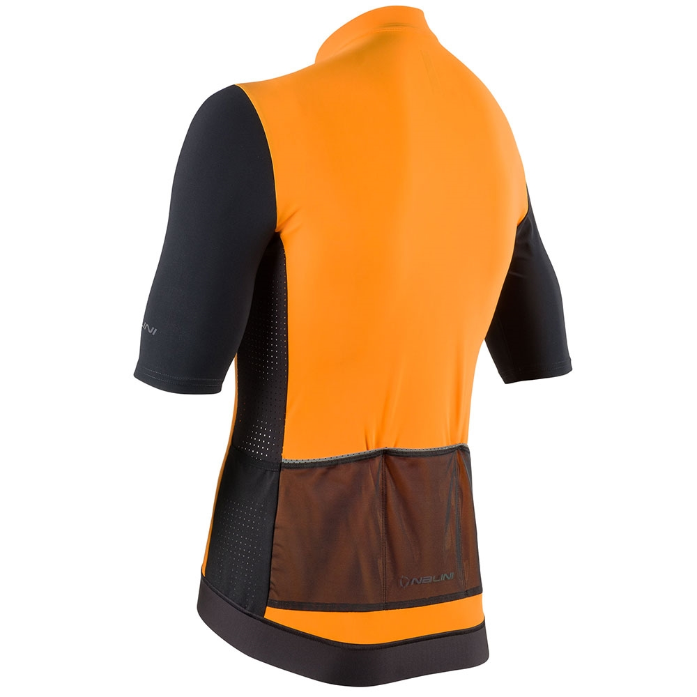 Nalini New Sun Block Short Sleeve Jersey: This jersey is made of a pre-dyed fabric in polyamide with elastane, the touch of this fabric is particularly soft and comfortable, it guarantees a high UV protection from sunshine. The weight of the fabric is in this case slightly higher, we have granted air circulation with a lighter fabric on side panels and some laser holes in the underarm area. 5 pockets, three in the classic rear position and two on the side panels, for a maximum carrying capacity. Reflex holographic details for high visibility.