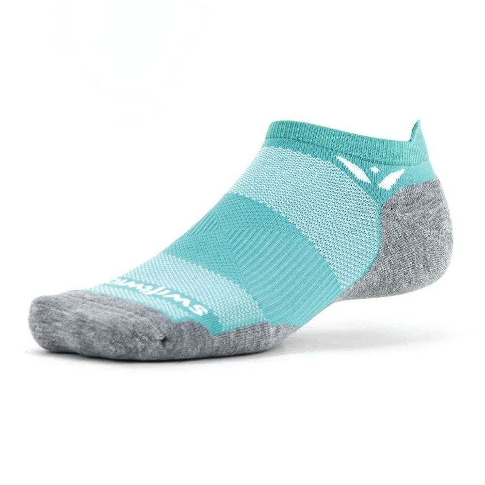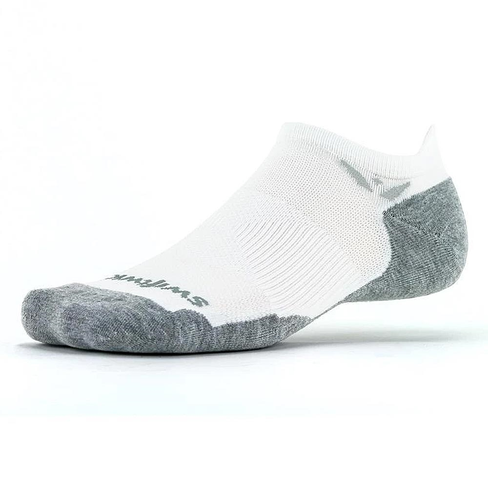 Swiftwick Maxus Zero Tab Socks: MAXUS Zero Tab is designed for comfort with a new micro tab that prevents contact with the back of the shoe for maximum protection from blisters. MAXUS delivers compression performance benefits you can feel in a relaxed comfortable fit. The plush footbed is constructed using high volume fibers that wick moisture 40% better than competitive materials with a thin, lightweight upper to increase breathability. Ideal for fitness, running and golf.