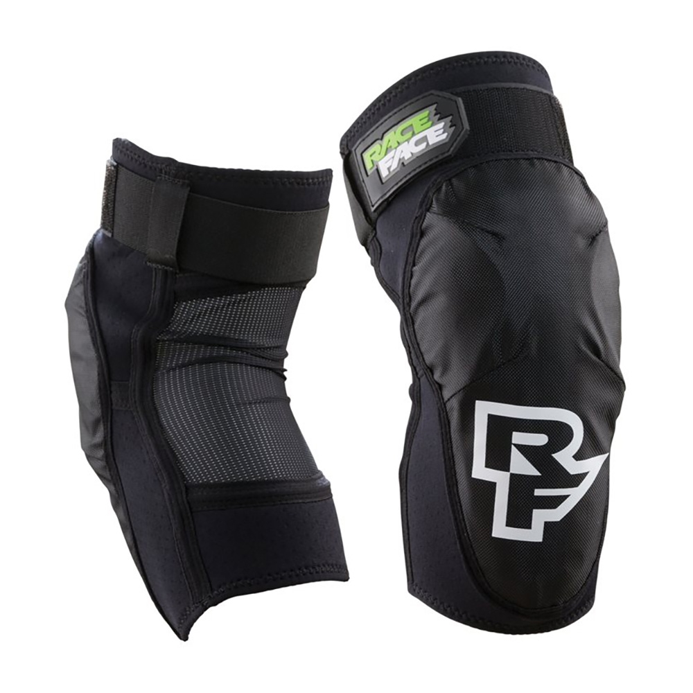 RaceFace Ambush Elbow Guard: Comfortable elbow pads that stay put throughout the ride. Featuring D30 high performance shock absorbing foam. Perforated Neoprene enhances venting and moisture control. Terry lined for wicking and comfort. Soft mesh panel at inner elbow to keep cool. Woven upper elastic strap and lower Neoprene comfort strap. Branded rubber grab tabs.